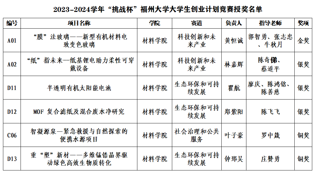 获奖名单: