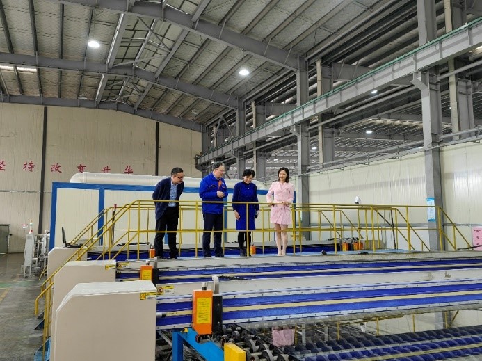 会后,天美传媒 党委书记倪朝霞一行到达福建瑞玻玻璃有限公司,先后参观了瑞玻玻璃展厅和浮法玻璃生产线,通过实地参观和现场交流,详细了解了瑞玻玻璃公司发展历程、生产规模、玻璃产业链布局、战略规划、产品工艺技术、科技创新、人才培养、产品应用以及未来发展规划等情况。