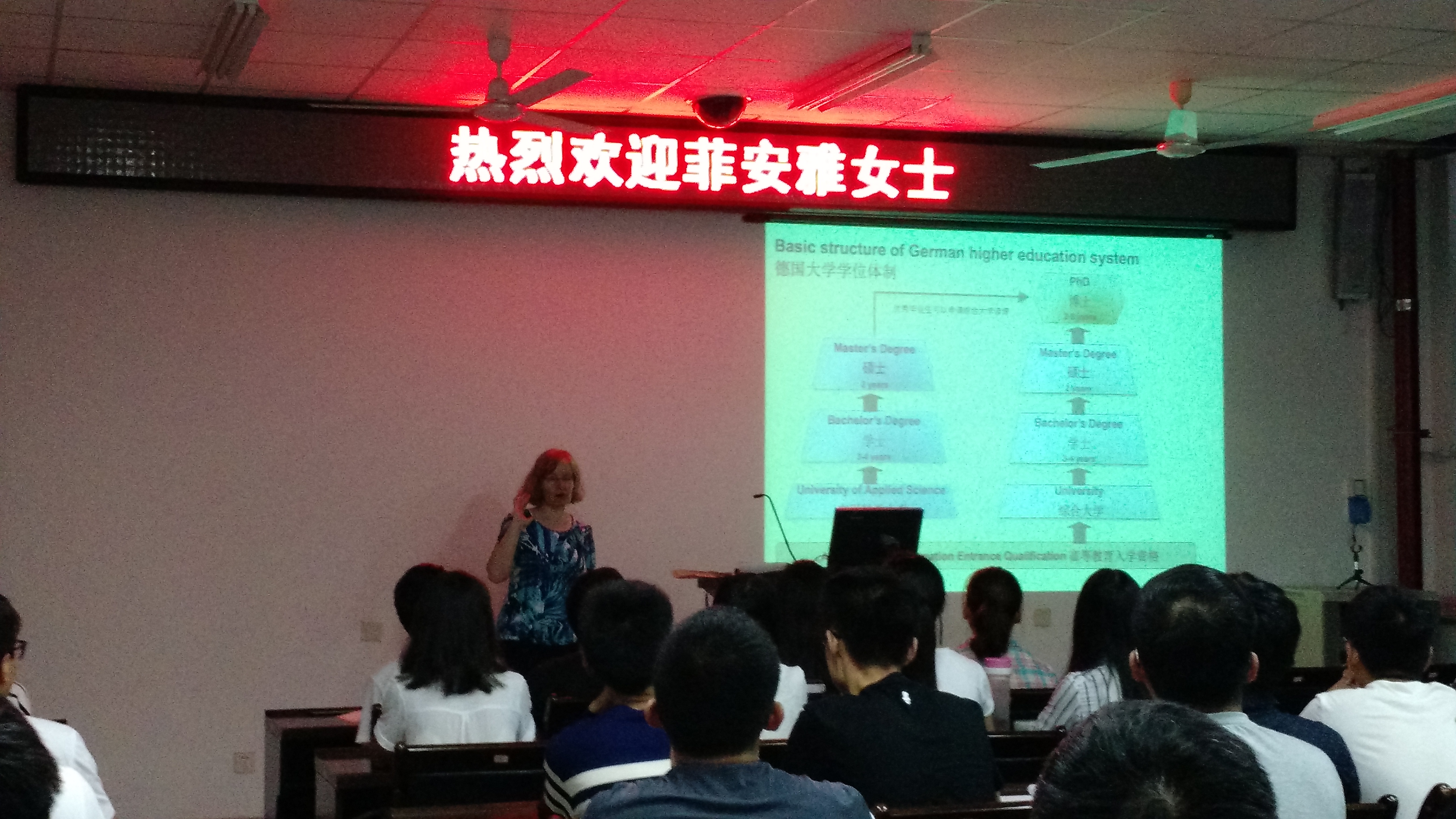 2016年10月20日下午4:00,德国留学宣讲会在材料楼404会议室顺利举行。本次德国留学宣讲会由天美传媒 张腾副院长主持,天美传媒 中德研究院主任菲安雅女士主讲。