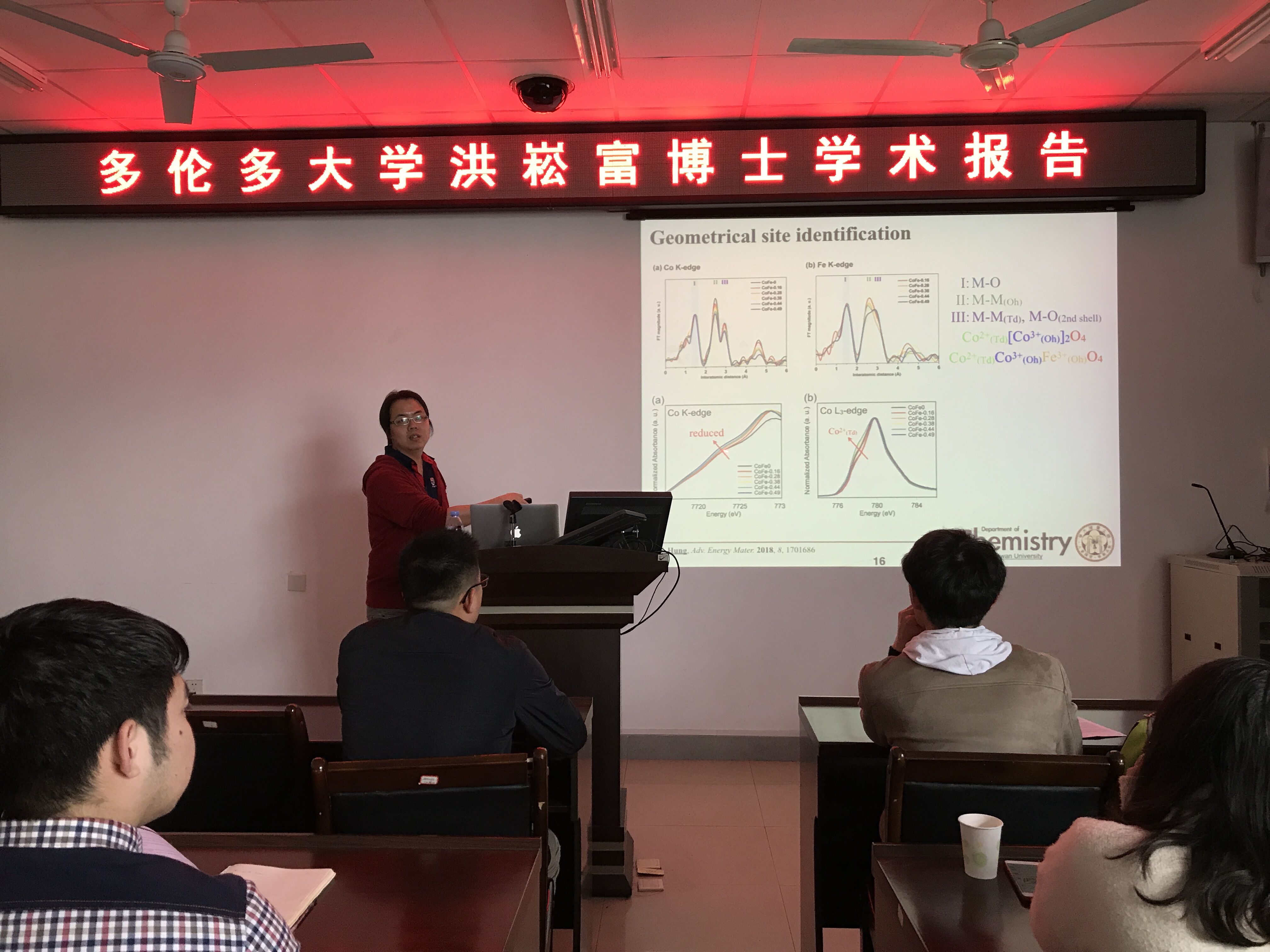 2019年4月4日,多伦多大学洪淞富博士应邀莅临材料科学楼404为天美传媒 师生带来一场题为“Development of High-efficient Electrocatalysts and Photoelectrocatalysts and the In-/Ex-situ Analysis”的学术报告,报告由“闽江学者”肖方兴教授主持。