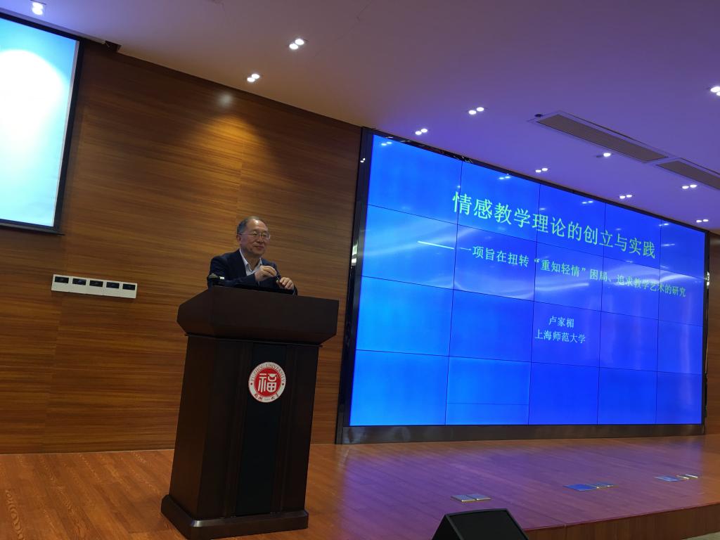 卢家楣教授在讲座中首先介绍他对情感教学理论的最初探索,针对教学中长期以来存在的重知轻情的教学失衡状况,总结前人理论“教育是一种艺术”“艺术是情感”的基础上,推理新观点“教育应该是充满情感的”,真正的教育教学应该是一个充满情感的为学生所乐于接受的育人过程。同时,卢家楣教授运用多个案例论证观点。