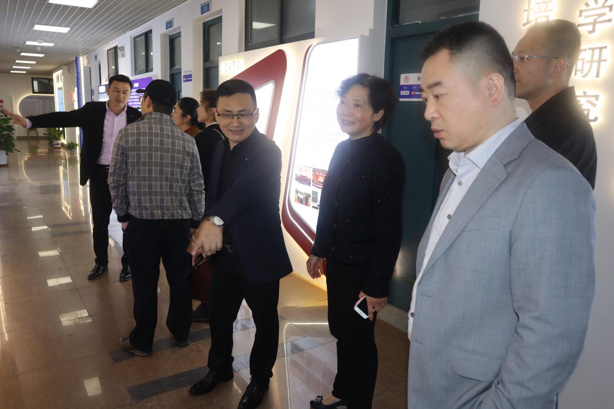 捐赠仪式举行前,党委倪朝霞书记、张志忠副书记带领校友参观学院文化长廊,回顾天美传媒 的峥嵘岁月,介绍学院的现状、师资队伍等。