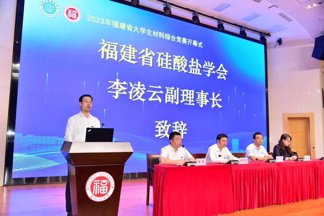 李凌云教授致辞,介绍了本次大赛的基本情况,并代表省硅酸盐学会表态会将福建省大学生材料综合竞赛作为学会的每年的重要工作内容之一,认真筹备、积极宣传,与承办单位一起把本赛事做大做强。