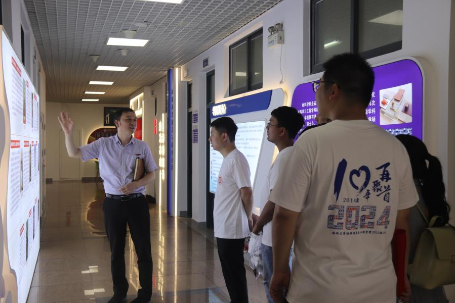 在座谈会正式开始之前,张志忠副书记热情地引导校友们参观了学院的文化长廊。通过一系列展览和陈列,校友们对学院近年来的发展历程和成就有了直观的了解。