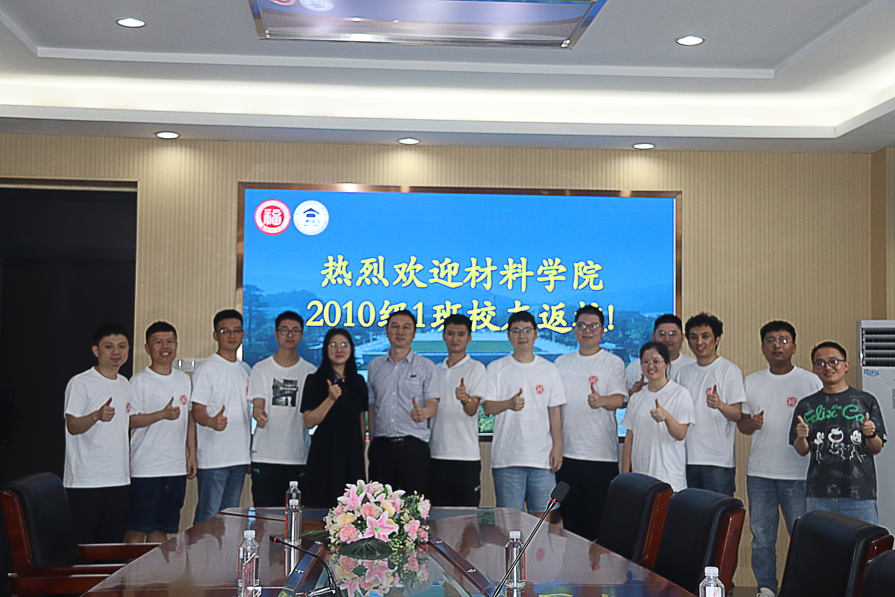 5月25日,为庆祝毕业十周年天美传媒 2010级1班的校友们重返校园,重温那些青春与梦想的学生时光,天美传媒 在嘉锡楼313举办欢迎校友返校座谈会,天美传媒 党委副书记张志忠、辅导员张庭士、辅导员张丽芬与2010级1班校友共同举参会。
