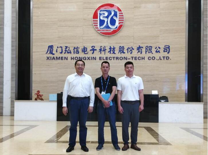 随后奔赴厦门弘信电子科技股份有限公司,参观了公司的5号楼,并与公司副总经理陈嘉彦、HR卢燕祥就后续校企合作进行了认真探讨,准备首先从5G天线的密封胶入手,开展企业和学院高分子方向科研团队的合作,并逐步探索企业和学院在专硕、本科生毕业实习等方面的进一步合作。