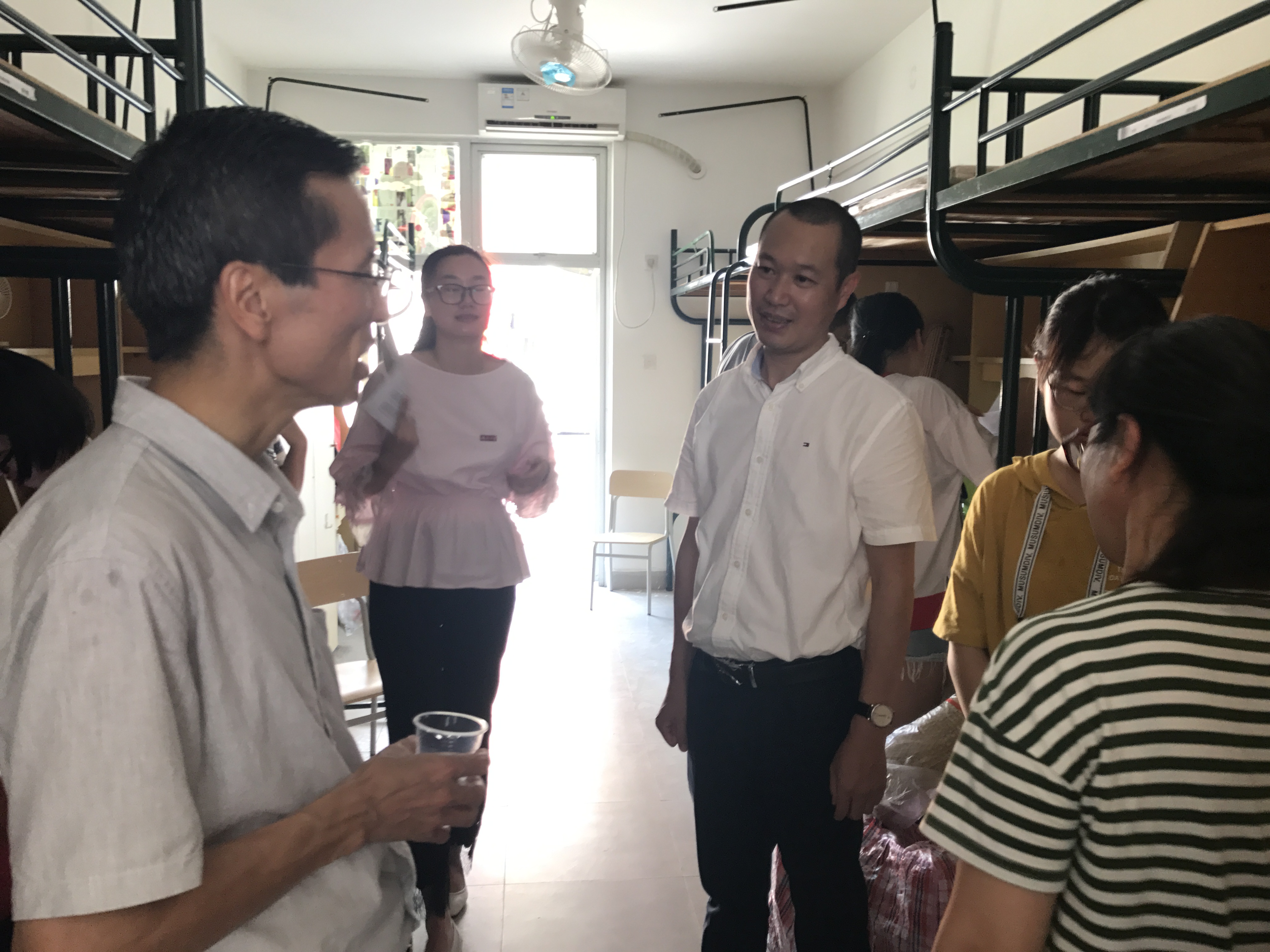 金秋送爽,丹桂飘香,9月6日天美传媒 迎来了来自五湖四海的学子们。学生会各部门、班级都在有条不紊地开展迎新工作。当天上午,我院党委书记倪朝兴老师、党委副书记王剑龙老师、新生辅导员王怡老师代表天美传媒 一一走访新生宿舍,给莘莘学子及其家长们送去最真挚的问候。