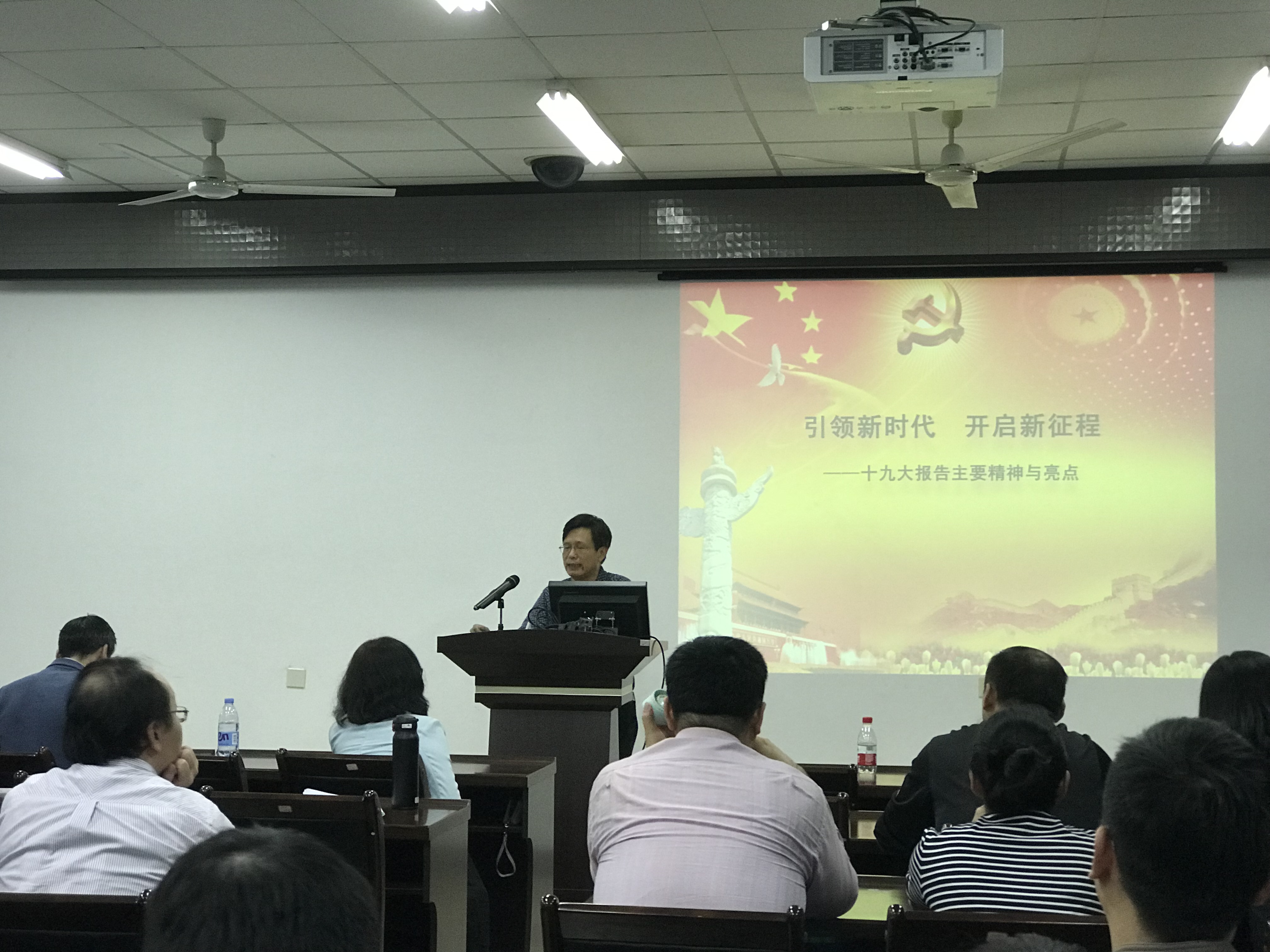 此次宣讲会是天美传媒 党委学习党的十九大精神主题系列活动之一。会议邀请天美传媒 党委党的十九大精神宣讲团成员、马克思主义学院庄穆教授作题为《引领新时代 开启新征程——十九大报告主要精神与亮点》的专题报告。庄穆教授从党的十九大概况、大会主要成果和十九大报告主要精神和亮点等方面对党的十九大精神进行了系统深入讲解。他指出十九大报告立意高远、总揽全局、思想深刻,主题突出、论述精辟,具有很强的思想性、前瞻性、战略性、指导性,通篇贯穿着坚定的信念追求、强烈的历史担当、非凡的创新品格,给人以信仰的感召、方向的指引、进取的力量、胜利的信心,是我们党迈向新时代、开启新征程、续写新篇章的政治宣言和行动指南。