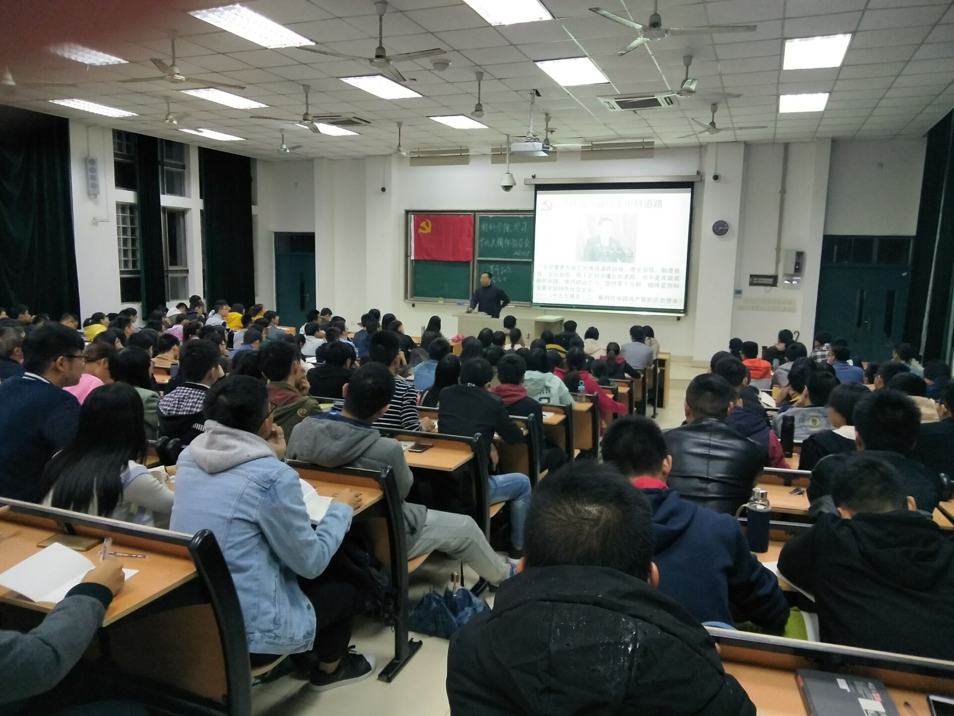 为进一步加深同学们对党的十九大精神的学习理解,11月21日,天美传媒 于东二-109开展了天美传媒 学习十九大精神报告会。此次报告会主讲人为院党委副书记王剑龙老师,参与学习的有全学院本科及研究生各年级党支部党员和预备党员以及入党积极分子。