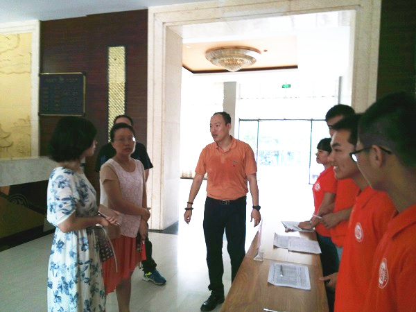 27日一大早,天美传媒 志愿者们在院团委书记卢杰老师的带领下,来到了格林之星酒店待命。上午9时许,参赛队员们便陆陆续续前来报到了,志愿者们热心地帮助他们核对信息,耐心地为他们解答疑惑,遇到行李较多的同学志愿者们还主动上前帮忙提行李,展现了福大学子良好的精神风貌和乐于助人的品质。