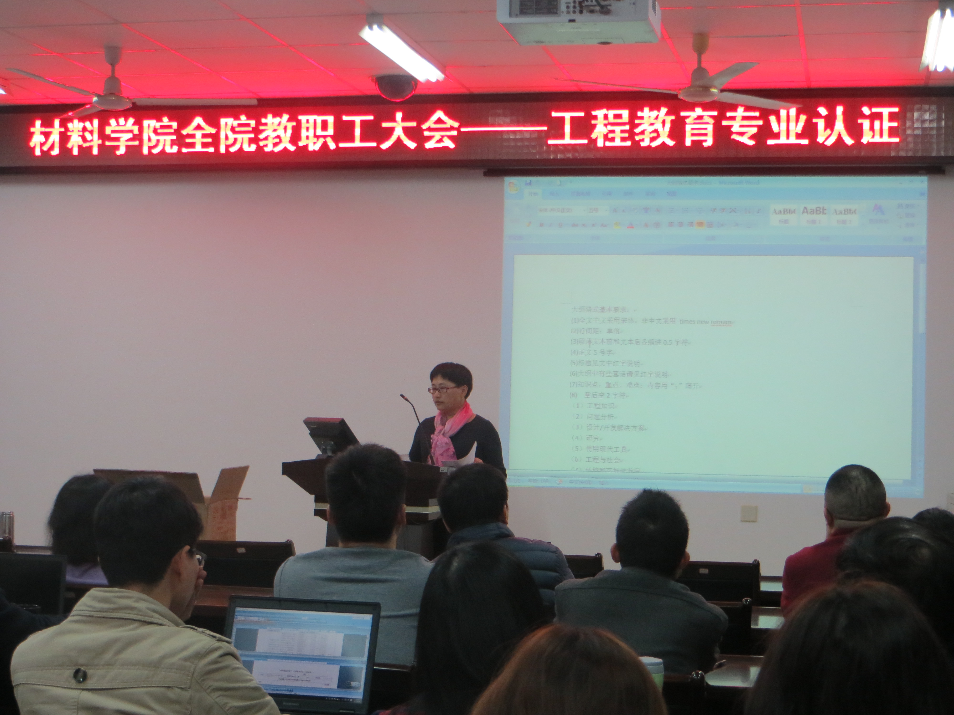 2016年1月4日下午,天美传媒 全体教职工大会—工程教育专业认证会议在材料楼404会议室召开。院党委徐雪玉书记、詹红兵院长、王剑龙副书记、于岩副院长出席了此次主持此次会议,参加此次会议的还有天美传媒 全体教职工。