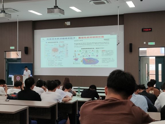 紧接着,陈航榕研究员以“面向生命健康的功能纳米材料研究与展望”为题进行了分享报告会,以面向人民健康的材料为出发点,研究治疗肿瘤等重大疾病的新材料,利用或调控肿瘤微环境,构建响应型多功能纳米诊疗剂材料。随后,陈航榕研究员分享了她的近期研究内容,包括增效抗肿瘤免疫治疗新材料、新策略。最后,陈航榕研究员就自身研究的心得体会与同学们分享,劝勉同学们要夯实自身理论基础,不断扩大知识面,培养自主学习能力,努力提升自己各方面的能力,希望天美传媒 新生同学们能学有所成、学有所用。