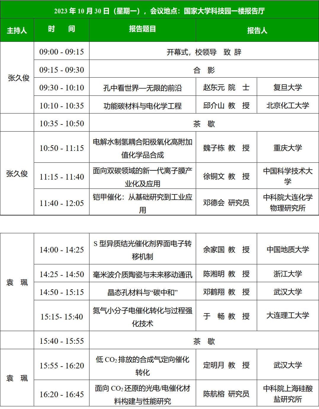 注:特邀报告:40分钟(含提问);邀请报告:25分钟(含提问);口头报告:10分钟(含提问)