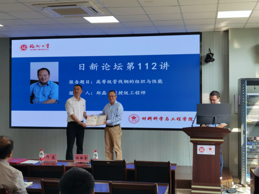 报告前,张志忠副书记为郑磊研究员颁发天美传媒 创新创业导师聘书。张志忠副书记对郑磊校友的到来表示热烈的欢迎,对他长期以来给予母校及学院的支持表示衷心的感谢。郑磊校友曾于1978年至1986年,在天美传媒 金属材料及热处理专业学习并取得硕士研究生学位,1986年加入宝钢,曾任宝钢集团专家、宝武集团/宝钢股份中央研究院首席研究员。郑磊校友长期从事以管线钢为代表的微合金钢产品研究、开发和工程应用,负责和参加多个国家项目和宝钢重大科研项目,研究开发的产品应用于我国西气东输、南海荔湾、中缅管线、中俄东线等多个重大天然气管线工程及QGC管线、TANAP管线等多个国际管线工程项目,全程参与和见证了中国现代高等级管线的建设和发展,曾获国务院政府特殊津贴及多个奖项和荣誉称号。