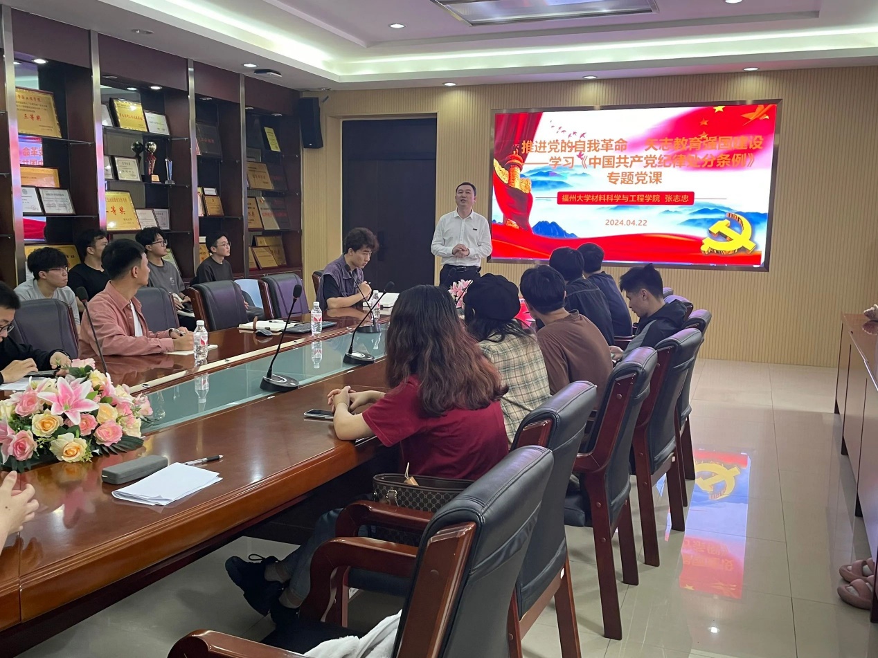 5月13日下午,院党委委员、林枞副院长在嘉锡楼313会议室为材料科学与工程系第二党支部和第三党支部党员上学习《中国共产党纪律处分条例》专题党课。