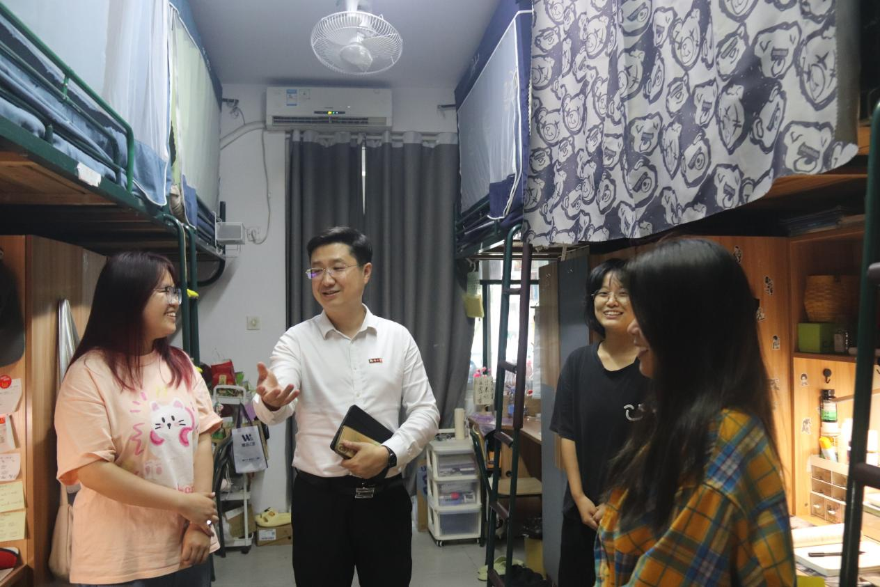 5月29日,校党委常委、副校长夏帆到生活一区5号楼走访所联系的学生宿舍。校学生工作部(处)张红部(处)长、天美传媒 党委书记罗涛、执行院长袁珮、党委副书记张志忠、辅导员等人员陪同。夏帆副校长与学生亲切交流,表达了对材料学子学习生活与未来发展规划的关心,并强调了良好生活习惯和宿舍文化建设的重要性,将学校对材料学子的关怀传递到了宿舍,也送进了材料学子的心坎里。