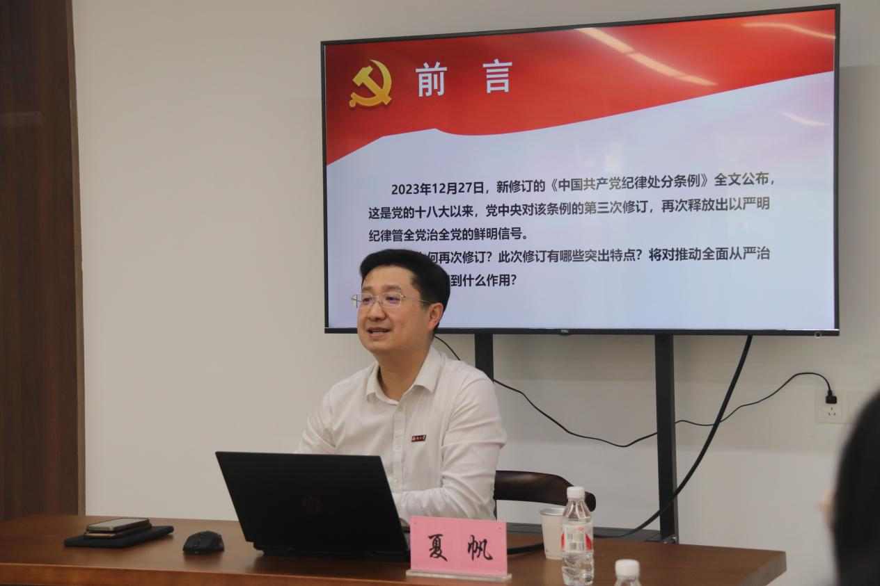 夏帆副校长为联系的2022级高分子材料与工程1班上党纪学习教育专题党课暨思政课。夏帆副校长深入浅出地从《条例》再次修订的原因、此次修订的突出特点及新《条例》对推动全面从严治党向纵深发展起到的作用等三个方面为材料学子做了详细辅导。同时,夏帆副校长通过分享自己的成长和求学经历言传身教,特别强调了阅读课外书籍的重要性,鼓励材料学子积极拓宽知识视野。他指出,阅读是获取知识、开阔视野的重要途径,而阅读课外书更是能够让学生们接触到更多的学科领域和思想观点,有助于培养材料学科兴趣、综合素质和创新能力。最后,夏帆副校长鼓励材料学子珍惜在校学习时间,把握学校的各类学习资源和平台,提升专业水平,练就过硬本领,努力拼搏、踔厉奋发,做新时代有为青年。