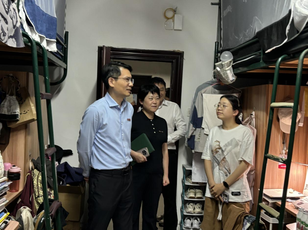 6月4日晚上,校党委黄身勇副书记、学生工作部(处)张红部(处)长、鲍星华副部(处)长等领导到旗山生活区5号楼、8号楼走访天美传媒 学生宿舍,天美传媒 党委张志忠副书记、辅导员等陪同。