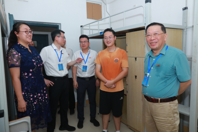 校党委陈国龙书记、黄身勇副书记、郭文忠副校长等校领导深入天美传媒 新生宿舍关心慰问,与新生亲切交谈,并亲自给天美传媒 研究生新生佩戴校徽,勉励同学们珍惜大学时光,实现人生理想。
