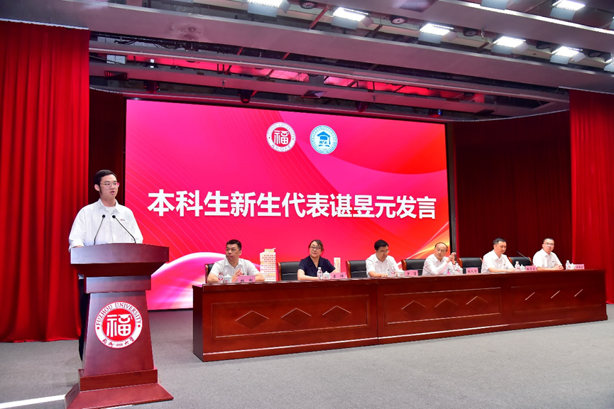 回顾十年寒窗,展望精彩未来,本科新生代表谌昱元同学发言,鼓励同学们在院训的引领下,磨砺自身,不断前行,以信念作为动力,保持好奇和探索,将个人理想同国家命运紧密相连,扛起肩上“科技兴国”的重任,用奋斗书写青春华章!