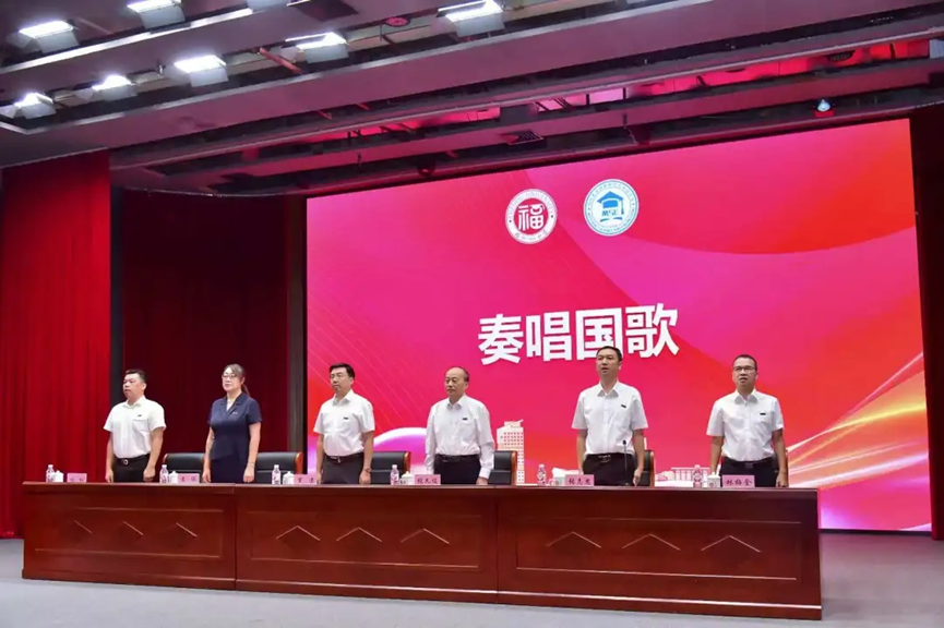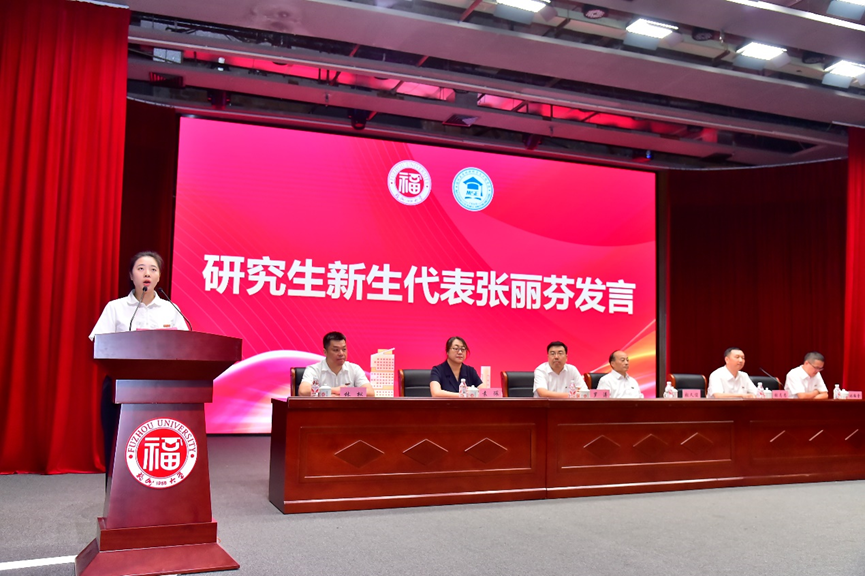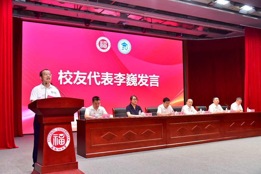 校友李巍博士发言,寄语新学期新同学,回顾了过去的校园岁月和学校的发展历程,表达了作为福大材料人的自豪之情,他勉励同学们要在新时代,掌握新工具,培养新能力,加强专业认同,探索未知的广阔领域,不负韶华,不负时代所托,奉献青春力量,助力社会主义现代化建设!