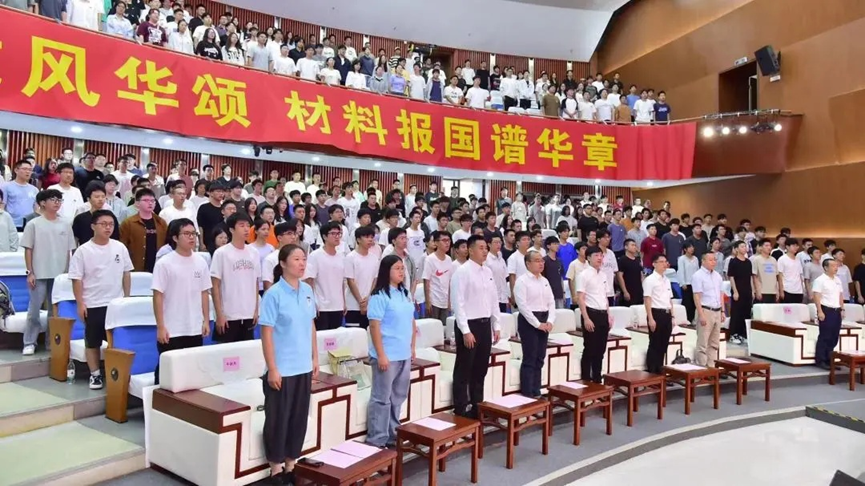 三种精神,牢记“陶冶品质,淬砺刚强”的院训,心怀“国之大者”,扬帆起航,在新时代的大潮中,奋勇担当,自信自强,矢志报国,愿你们在崭新的大学生活中,谱写青春华章,勇于担当、善于作为,成为新时代材料人!