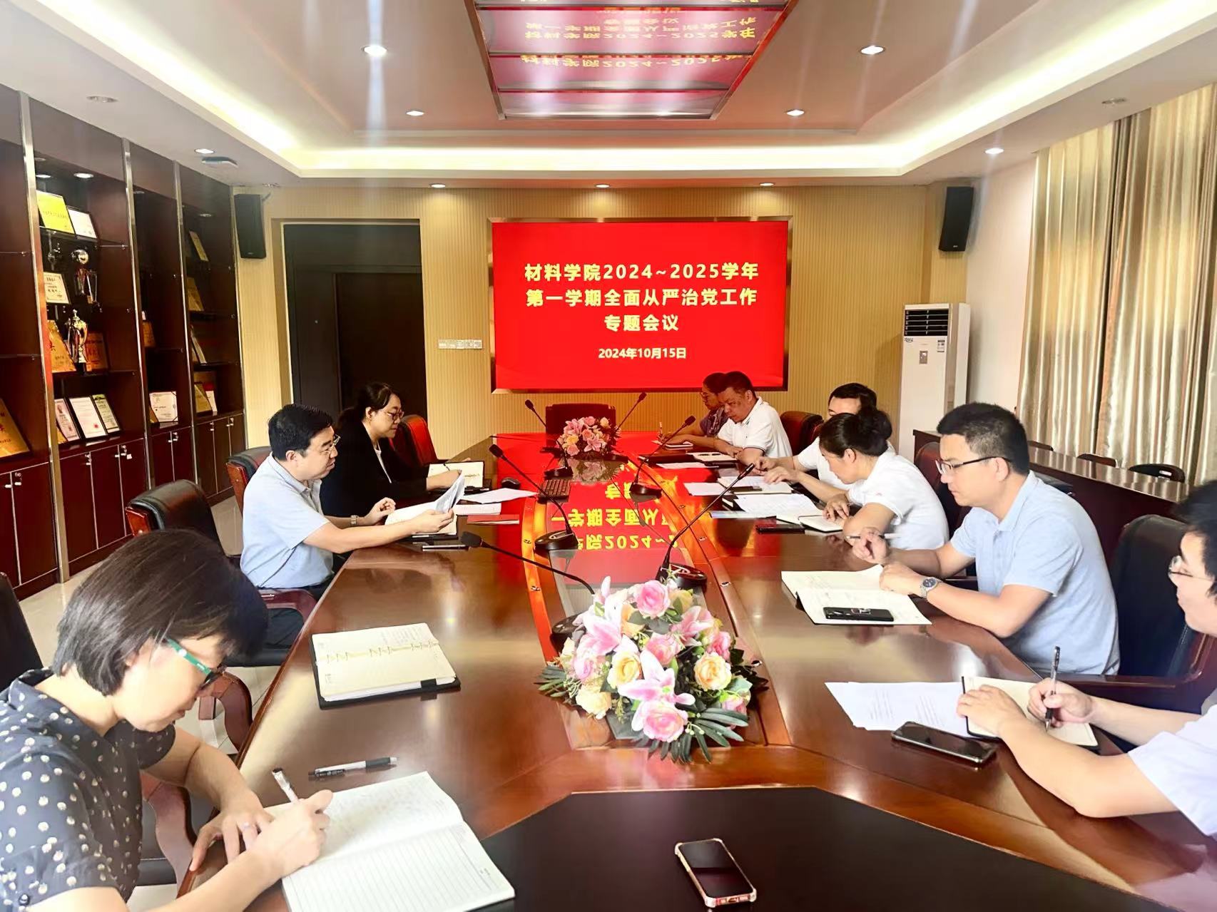 2024年10月15日上午,天美传媒 在嘉锡楼313会议室召开2024~2025学年第一学期全面从严治党工作专题会议,学院党政工领导干部等参加会议。
