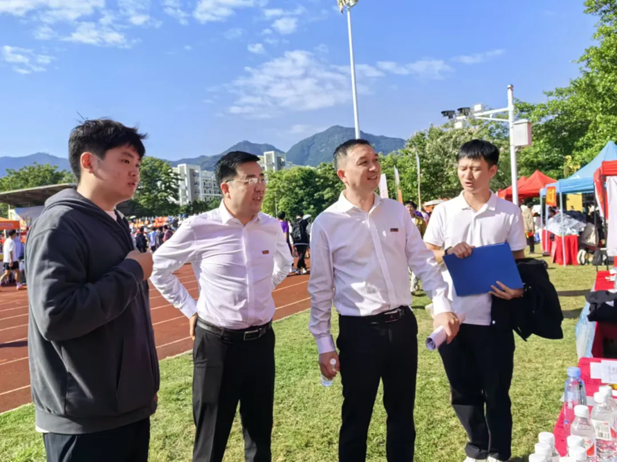 院党委罗涛书记、党委张志忠副书记、林枞副院长辅导员张庭士老师、张婷老师、张丽娟老师前往校运会现场观看比赛,并为运动员加油助威,同时到大本营和运动员之家慰问工作人员和后勤同学。