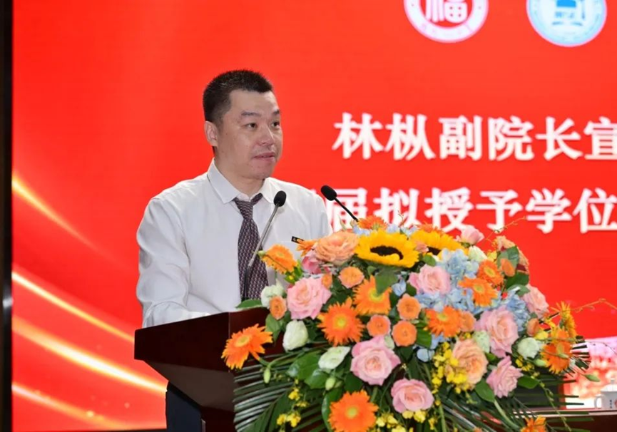 校友代表杨晨先生作为毕业40年的校友,向同学们分享:人生的价值在于认真生活、保持善良正直。他希望同学们铭记“福大人”的身份与责任,秉持终身学习的理念,勇于尝试新事物,充分利用校友资源,坚守内心本真,以务实坚韧之态拥抱属于自己的星辰大海。