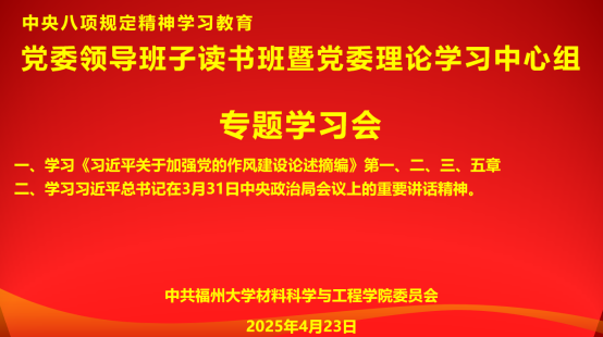 会上,学院党委书记罗涛带领与会人员学习了《习近平关于加强党的作风建设论述摘编》第一、二、三、五章,并传达学习习近平总书记在3月31日中央政治局会议上的重要讲话精神。