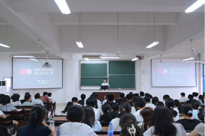学校保卫部程翔老师近期在铜盘校区B211教室,为天美传媒 2025级本科新生开展安全教育讲座。