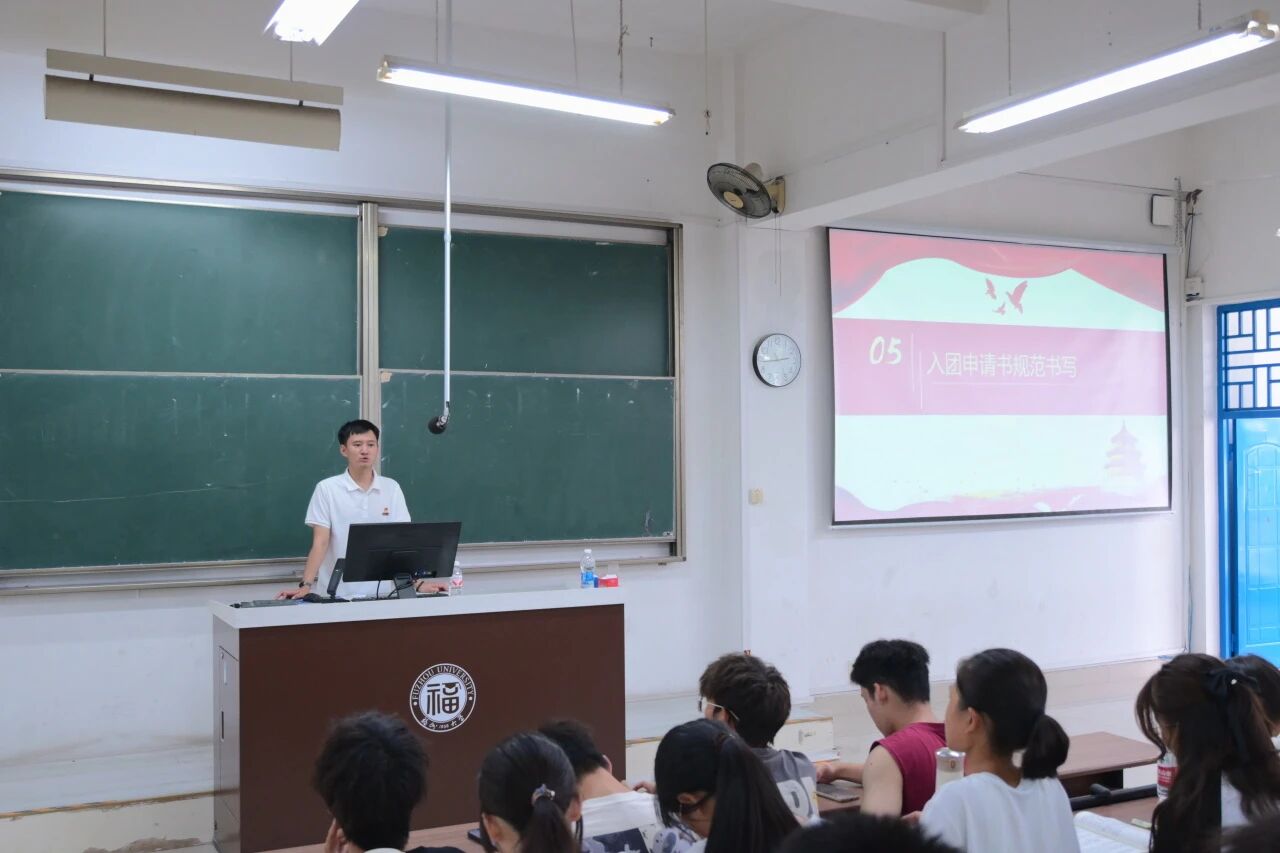 张庭士老师围绕团章、团史核心内容展开,解读《中国共产主义青年团章程》重点及团旗、团徽、团歌内涵,回顾共青团发展史。他结合华为芯片技术封锁案例,强调创新思维培养的重要性,并紧扣院训,从五方面指导团员践行责任担当。同时,他详细讲解入团程序与申请书规范书写要求,为入团积极分子提供清晰指引。