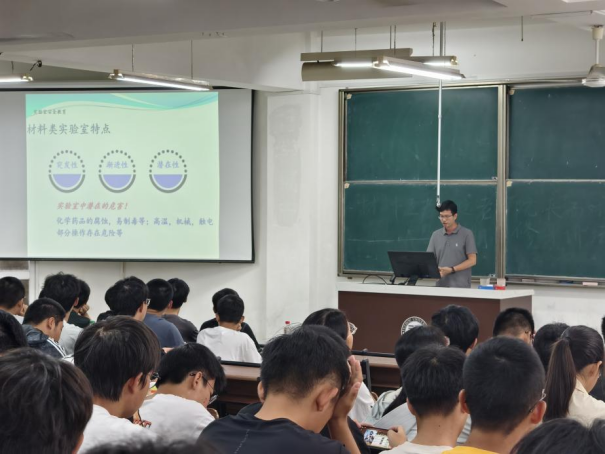 王国强老师首先概述实验室常见安全隐患,梳理潜在风险点。随后,他详解防爆炸的措施,介绍不同气体存储瓶的颜色辨别方法,并强调了实验着装要求与细节。他结合事故案例,让新生更直观地认识安全风险、深化安全意识。本次讲座有效提升了新生的实验室安全素养,为后续专业实验学习筑牢安全基础。