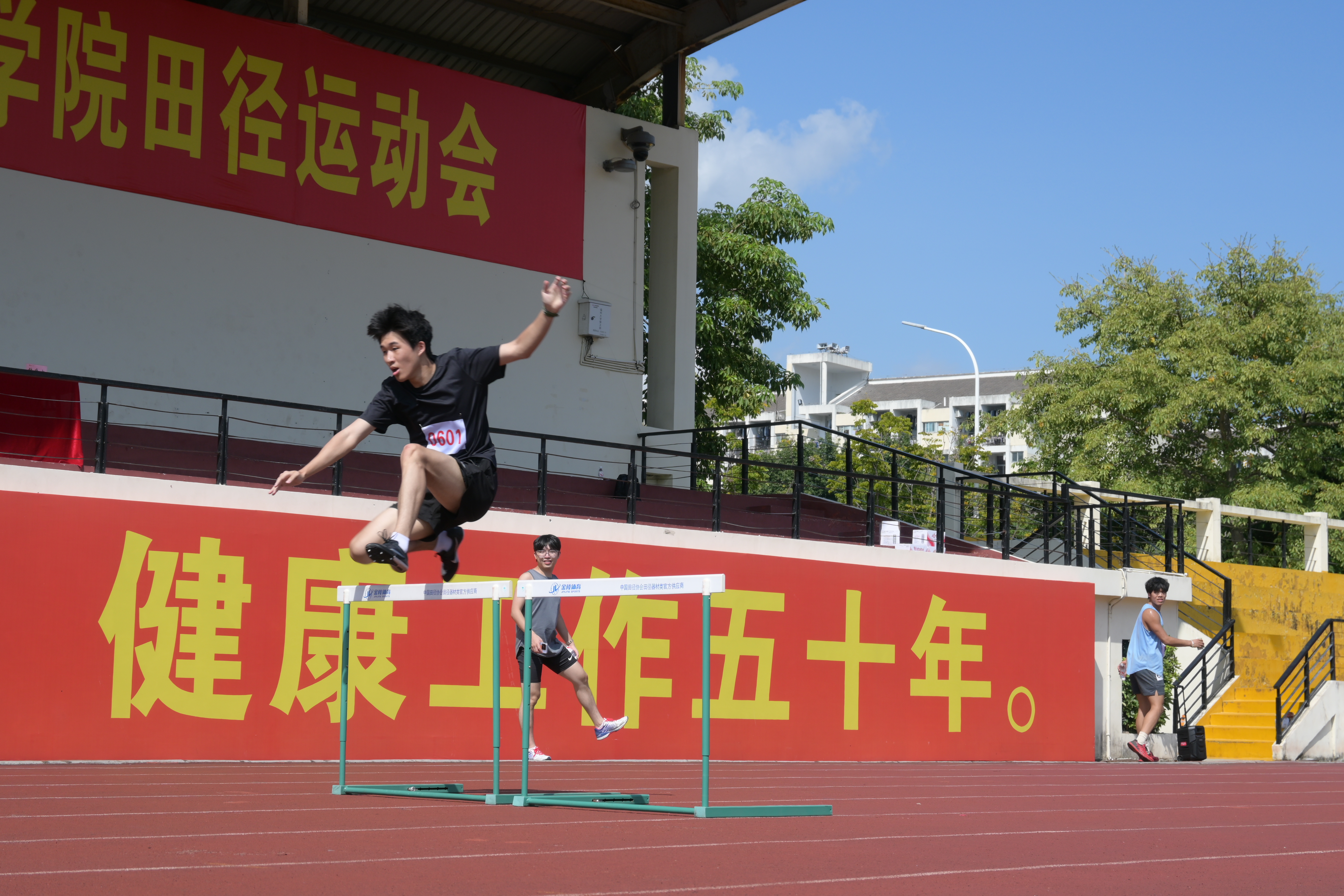 跨栏赛场上则更见技巧与节奏的融合。来自2024级代表队的钟米杰在男子400米栏中,精准把控每一次起跨、落地,栏间跑节奏丝毫不乱,顺利夺冠;来自2024级代表队的陈慧佳在女子400米栏中同样出色,面对栏杆毫不怯场,流畅的动作让她稳稳锁定胜局。