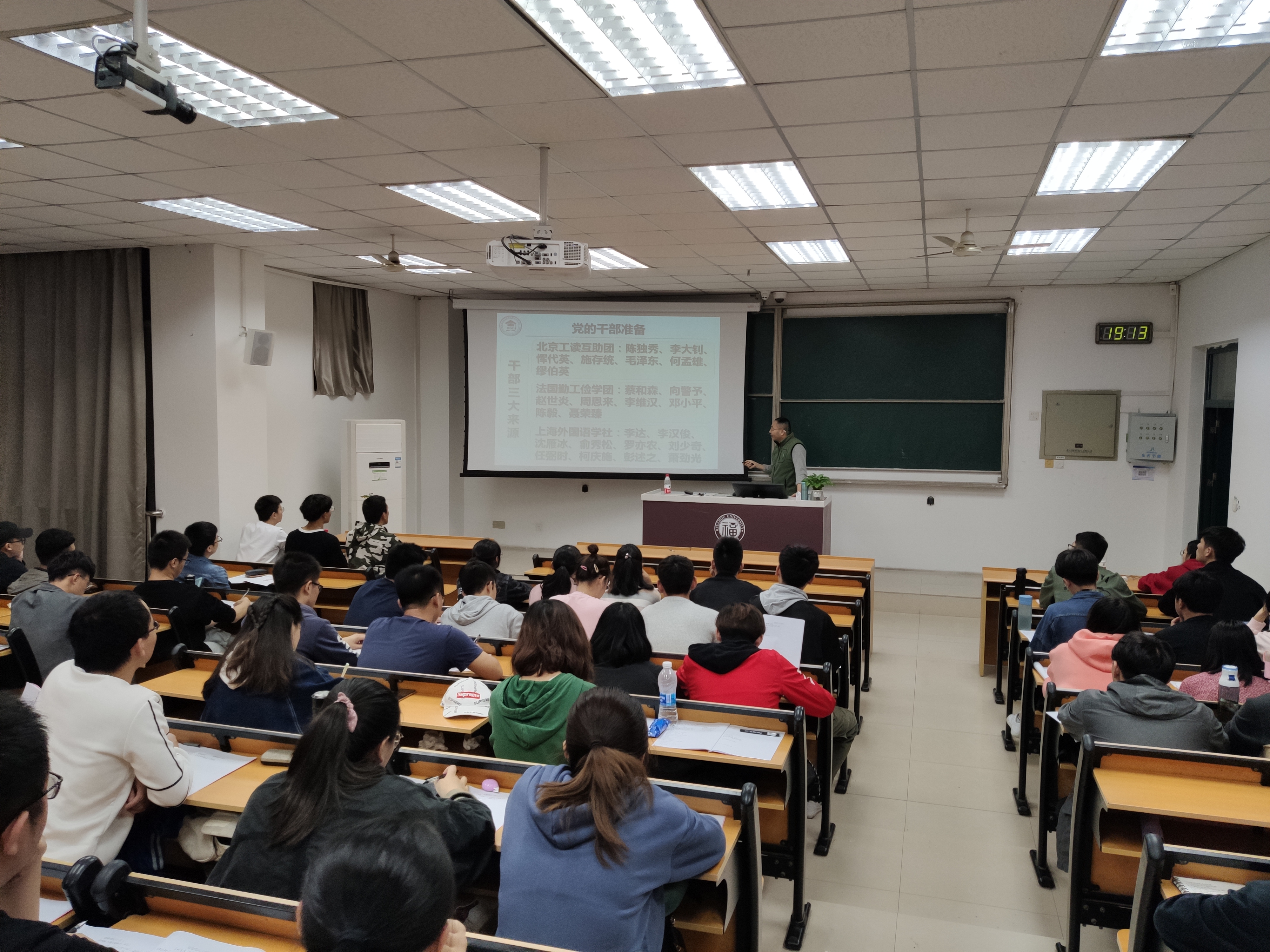 本次党课,王剑龙老师共分为4个部分为同学们授课。首先,他以党章的概念为切入点,向同学们介绍了党章的作用和地位。从他的讲解中,同学们认识到了党章是党的意志体现和行为规范,为党员提高党性修养提供标准、为坚持从严治党提供根本依据,具有无可替代的重要作用。随后,他又介绍了党章的历史沿革,他将党章的历史发展进程分为马克思主义传入、党的起源及干部准备、各次人民代表大会对党章的修改三部分介绍,依照时间顺序让同学们在学习党的光辉历史的同时对党章的起源及发展过程有了更深的了解。