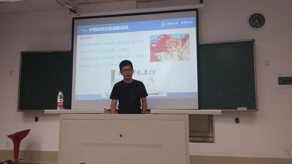 陈永福老师从三个方面授课,首先是传统文化的现实境遇:经济全球化影响—文化融合,传统文化与西方文化;文化多元化冲击—文化粗鄙,文化断层;传统文化现代化—文化传承,文化创新,文化软实力;传统文化与马克思主义关系—互不排斥。接着陈老师从三点阐述了传统文华的发展联络,优秀传统文化的核心是哲学,主干脉络是儒家、道家、佛家,个人修养。最后解读优秀传统文化与大学生个人修养,以研读《菜根谭》为例,揉合了儒家的中庸思想,道家的无为思想和释家的出世思想,为同学们作了精彩的讲解。