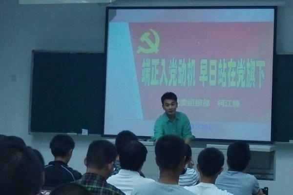 在具体阐述开设党员积极分子培训课的目的和意义后,柯老师向同学们举例大学生入党动机并进行类型分析。课上,柯老师向大家明确:树立正确的入党动机是入党的首要条件,而正确的入党动机就是全心全意为人民服务,不惜牺牲个人的一切,为实现共产主义奋斗终身。随后,他分别对大学生端正入党动机的重要性与如何端正入党动机做了详细阐述,并让同学们了解发展党员的不同成熟阶段,要求同学们自愿且志愿入党。最后,柯老师提出了四点要求,希望同学们都能够加强党性修养,不断端正入党动机,将入党作为自己继续前进的新起点,投身共产主义事业。