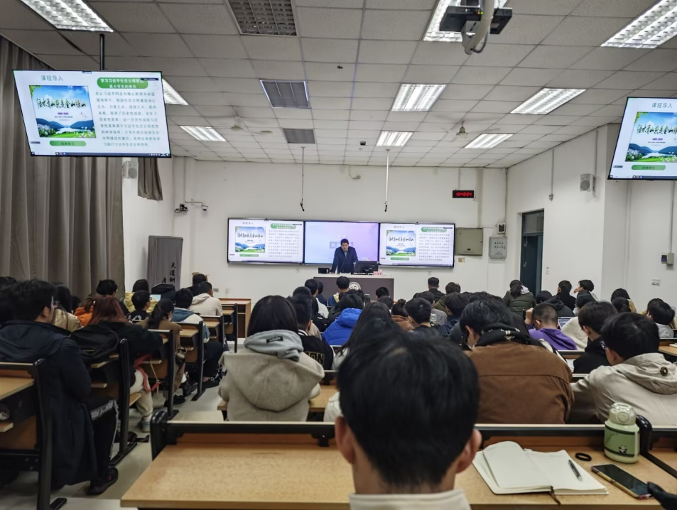 随后,刘志坚副教授进行了主题为《以习近平生态文明思想为指引,增强大学生的生态责任》的第一讲培训。刘老师指出,要深刻认识到最近中共第一生态环境保护督查组在福建省漳州市发现的海洋保护不力、海水养殖污染治理等方面的违法违规问题,每位大学生都应该深刻认识到双碳战略的重大意义。最后,他在课堂上呼吁大家在日常的生活工作中要带头做到节能减排、实现垃圾分类、对垃圾进行合理回收,发挥先锋模范作用!