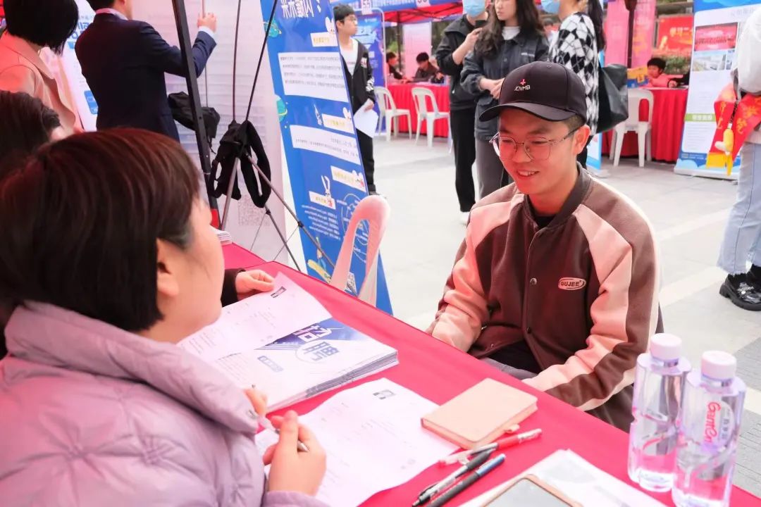 毕业生们手持简历,详细询问企业信息,认真进行现场面试,怀揣对未来的无限期许力求找到一份自己热爱的工作。