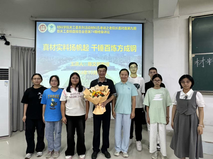 为深入学习贯彻习近平总书记关于关心下一代工作的一系列重要指示,帮助同学们更好地了解材料学科的发展特征和趋势,践行“陶冶品质,淬砺刚强”的院训,成为更有担当,更有使命的材料学子。10月17日晚,天美传媒 关工委于铜盘校区举行天美传媒 关工委系列活动材料五老说之老院长面对面第九期暨第74期修身讲坛。