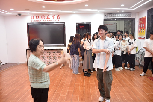 “七一勋章”获得者、党的二十大代表、军门社区党委书记林丹与同学们的亲切交流。她耐心倾听同学们的想法,分享社区从旧到新、改革焕新的历程,传承“真心为民”精神。林丹书记鼓励同学们志存高远,勇于担当,以社区奋斗史为镜,在新时代奋进,共创未来辉煌。