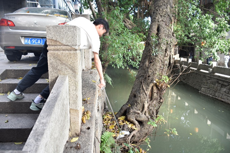 活动伊始,同学们身着鼓楼志愿者服装,投身于河道周围的卫生维护清洁工作。他们手持垃圾袋和清洁工具,仔细清理岸边街道杂物以及水面漂浮废弃物。通过志愿者们的努力,河道环境变得干净了,社区卫生面貌焕然一新。