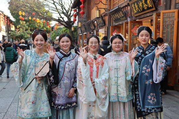 实践队亲身体验了“三把刀”文化,“三把刀”在阳光下闪烁着冷冽又迷人的光泽,与实践队员的服饰相得益彰。其独特造型引得行人注意,部分游客前来合影。期间,东南卫视的记者也注意到了这支特别的队伍,并进行了采访。实践队员自信大方地分享实践活动的情况。实践队员主动向路人介绍福建非遗“三把刀”的内涵,耐心讲解其历史渊源、制作工艺,以及背后承载的福建地域文化和民族精神。在这古韵悠长的三坊七巷,实践队员以“三把刀”为媒介,让更多人感受到了福建非遗文化的魅力,使其在新时代焕发出新的生机。
