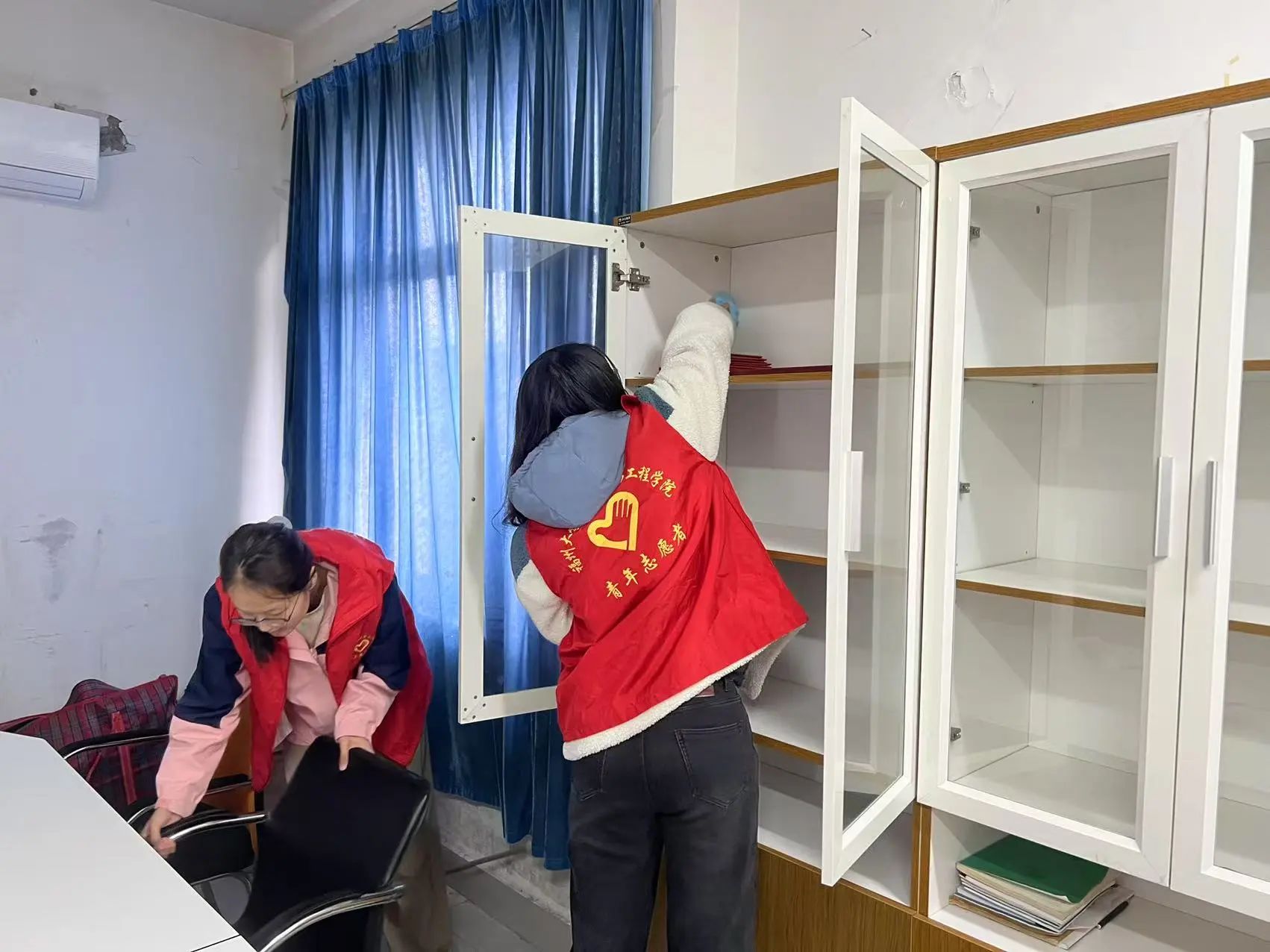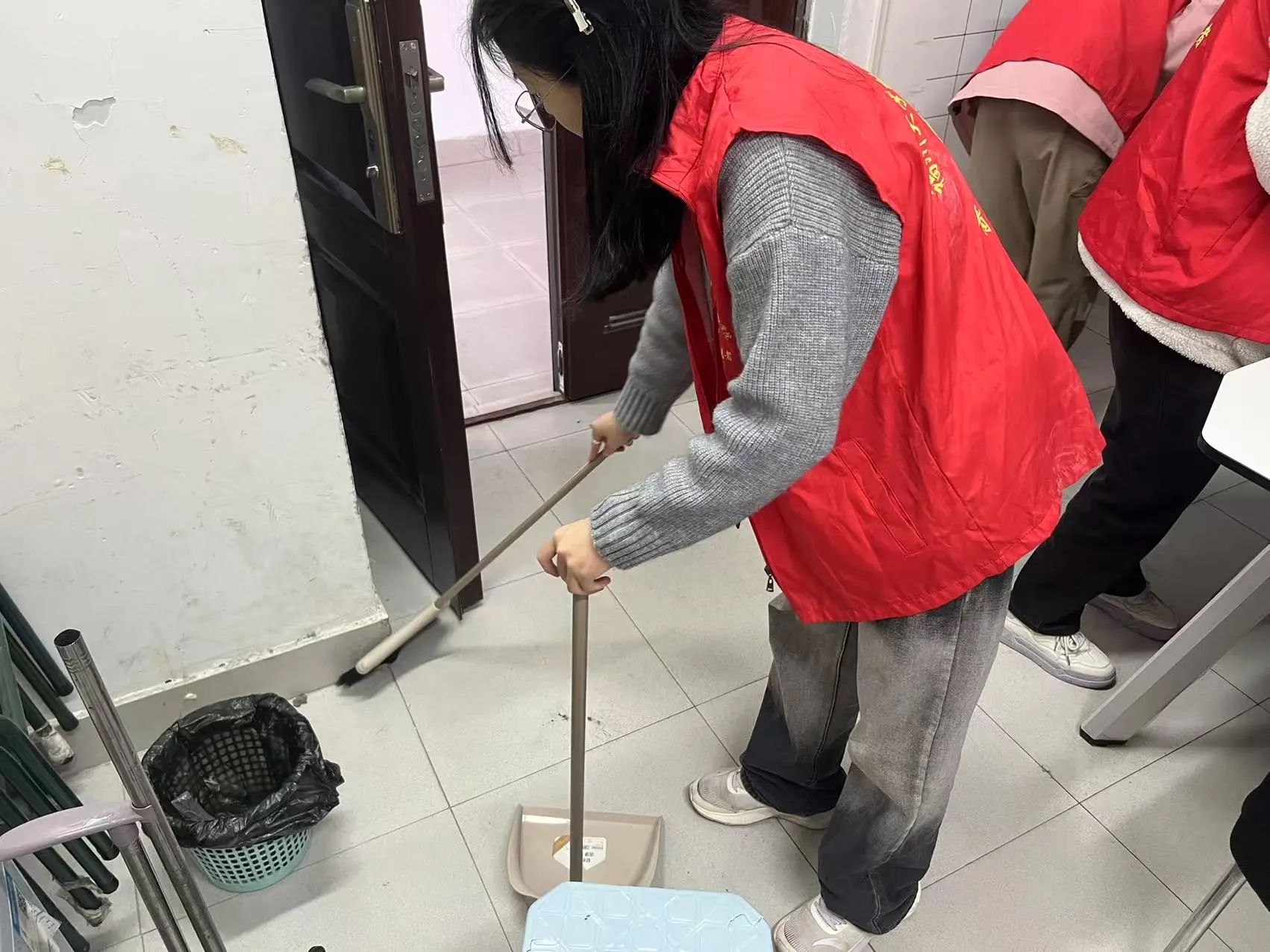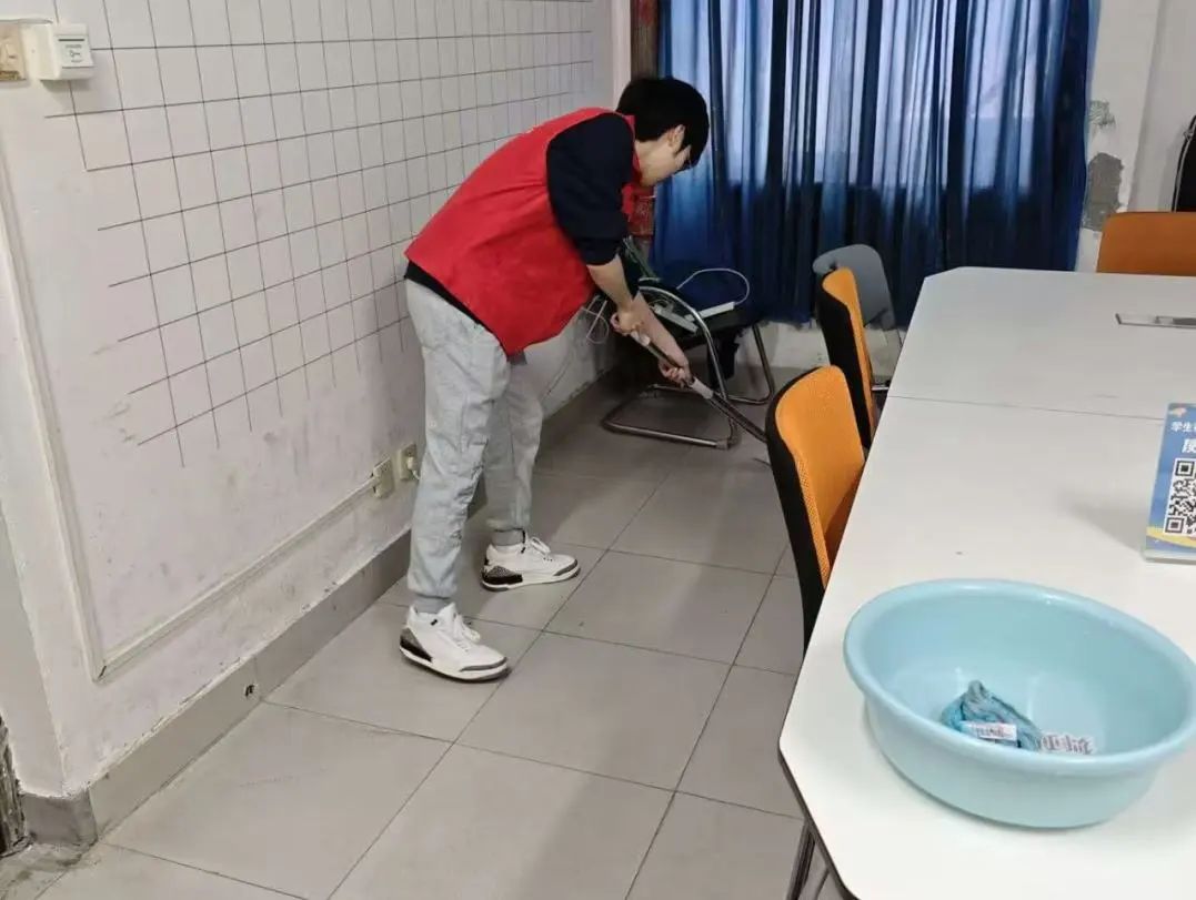 下午三点,天美传媒 活动室里呈现出热火朝天的劳动景象。志愿者们分工明确,手持抹布、扫帚、拖把等工具,对活动室进行全方位深度清洁。有的志愿者踮脚擦拭玻璃上的积灰,有的则仔细清除桌缝里的顽固污渍,还有的对地板进行打扫。经过志愿者们的努力,活动室面貌焕然一新,窗明几净的环境让前来参加活动的师生纷纷点赞。