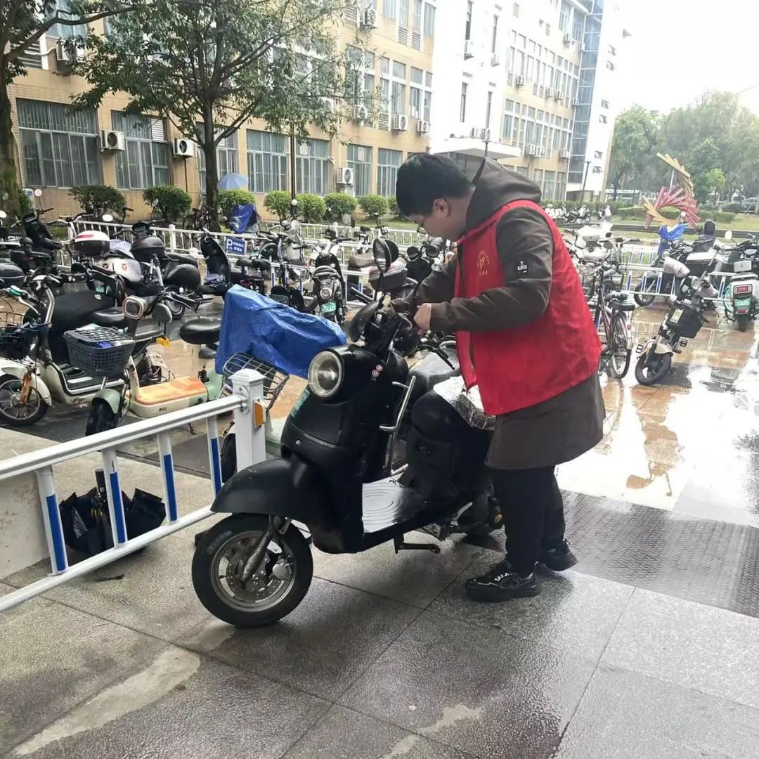与此同时,天美传媒 楼下的停车督导志愿服务也在有序开展。志愿者们穿着红马甲,在非机动车停放区域引导师生规范停车,对随意停放的车辆进行集中归整。