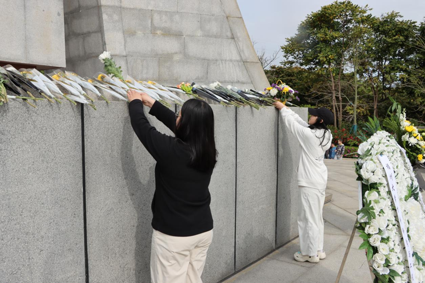 一束菊花,一份追忆;一次鞠躬,一生敬意。全体成员整齐列队,肃立于革命烈士纪念碑前。天美传媒 本科生辅导员张丽娟老师主持祭奠仪式,同学们手持白菊依次绕碑献花,以简朴庄重的仪式表达对英烈的深切追思。清风拂过陵园,白菊随风微动,寄托着后辈对先烈无限的追思与敬意。全体成员垂首默哀三分钟,向长眠于此的英烈致以崇高敬意。