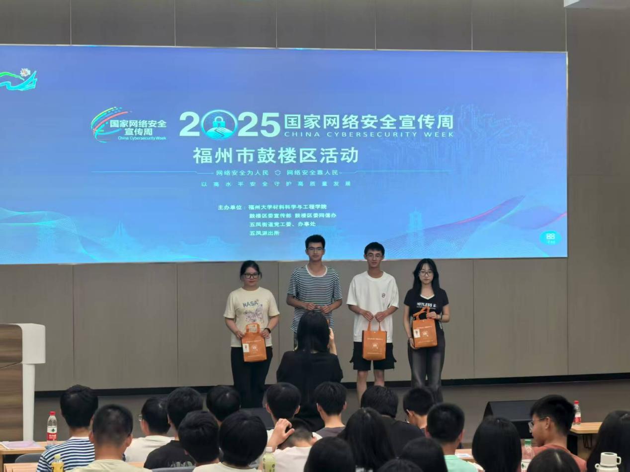 为让网络安全风险更直观可感,活动还组织新生观看网络安全主题宣传片。片中通过 “免费 Wi-Fi 泄露隐私”、“社交账号被盗用” 等场景模拟,清晰揭露了日常网络行为中易被忽视的安全漏洞。宣传片结束后,赵汇警官随即抛出5道延伸互动题,紧扣片中案例考查新生的风险判断与应对能力,进一步强化他们对网络安全知识的理解与运用。