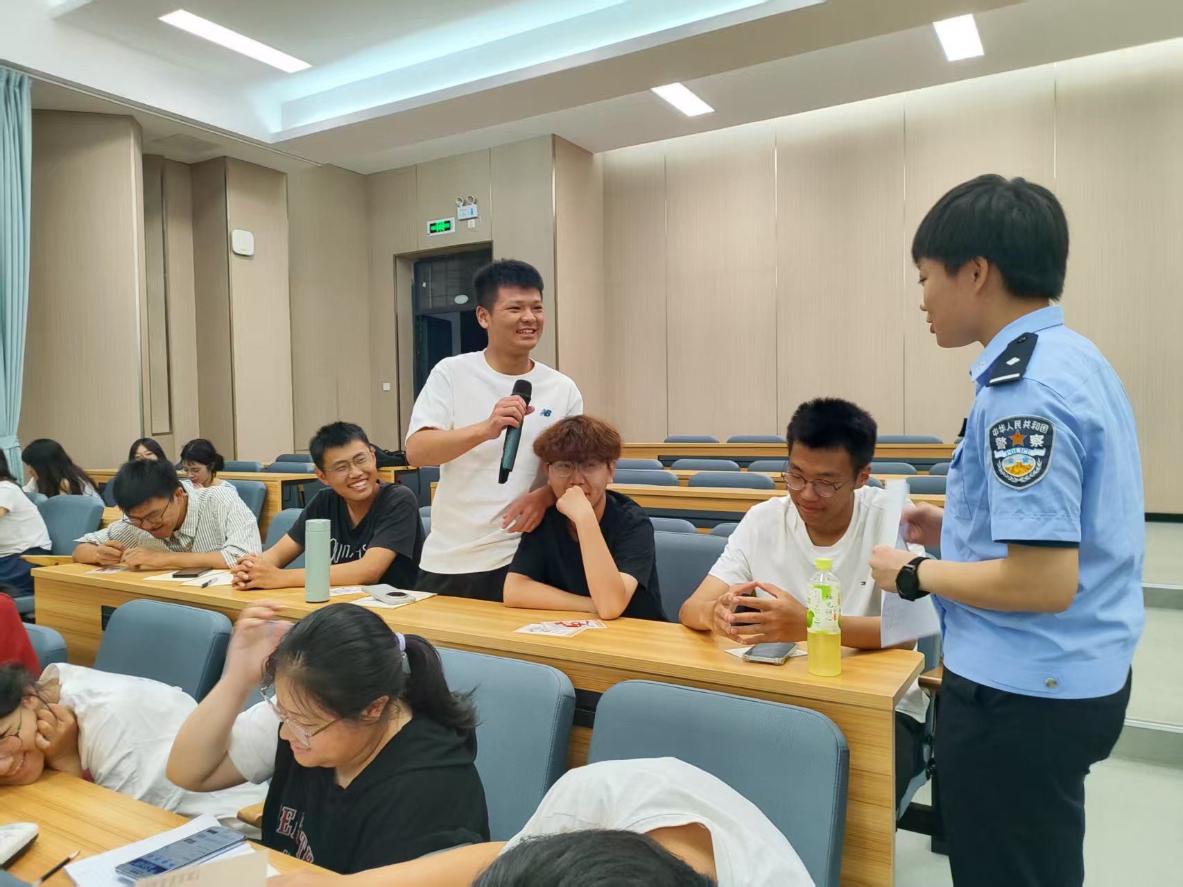 在反诈宣讲环节,赵汇警官结合福州高校近期发生的电信诈骗案例,重点讲解了 “冒充辅导员借款”、“刷单返利”和“校园贷伪装” 三类高频骗局。他通过还原诈骗分子的典型话术模板,教新生识别 “身份伪造”、“情感诱导” 等诈骗手段,并提炼出 “三不原则”——“陌生链接不点击、个人信息不透露、转账汇款多核实”,为新生筑起反诈防线。之后的反诈问答环节,新生们对 “校园贷的隐蔽陷阱”、“面对诈骗的应对流程” 等问题回答准确,在问与答中进一步巩固了反诈知识。