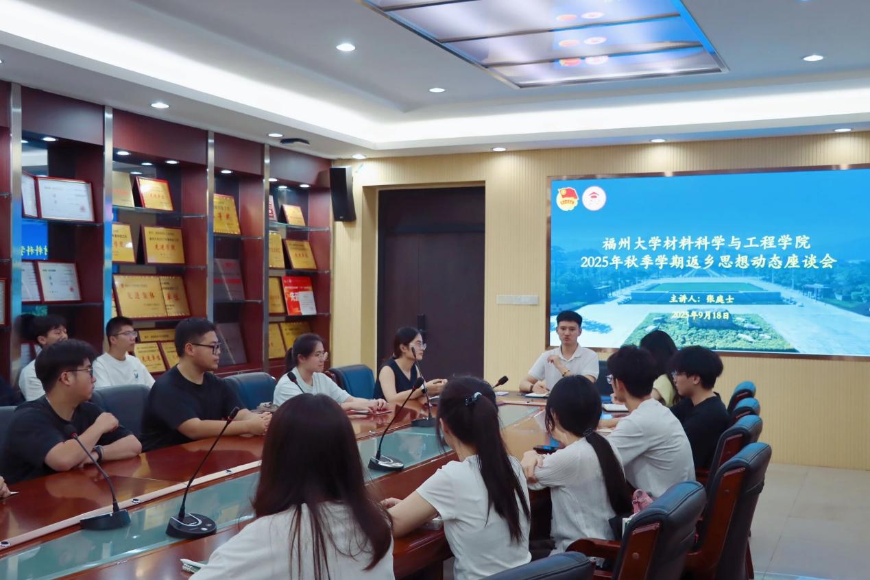 会议伊始,同学们踊跃分享了暑期期间的收获与感悟。暑期中,大家积极投身于各类学习与实践活动中:部分同学奔赴“三下乡”一线,通过参访材料企业、探寻非遗文化、感受乡村振兴脉搏、体悟革命精神,进一步了解了社会、增强了责任感;另一部分同学选择留校,或潜心科研,或全力备战学科竞赛,在钻研与协作中不断提升专业能力;还有同学加入返家乡创业团队及“扬帆计划”社会实践,运用专业知识与技能为家乡发展注入青春力量。接着,张庭士老师作总结发言。他高度肯定了同学们充实而丰富的假期生活,指出大家在暑期不仅实现了自我成长,更彰显了青春价值。同时,他对同学们寄予殷切期望,鼓励大家继续保持锐意进取、担当有为的精神风貌,不断追求新的突破。 最后,他强调,同学们要充分利用课余时间,尽早明确学习目标与职业规划;还要主动贴近时代脉搏,勇担责任与使命,将材料所学与国家发展需要紧密结合,以青年智慧贡献国家建设,用青春力量书写更加精彩的篇章!