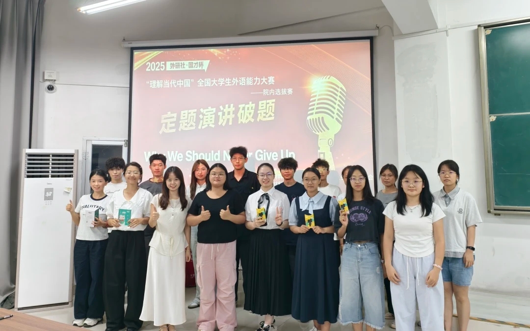 双节同辉,为以青春之声传递文化自信、丰富天美传媒 2025级本科新生的课余文化生活,搭建锻炼英语口语表达能力与展现青春风采的平台,近期,天美传媒 于铜盘校区B210教室成功举办2025年“外研社·国才杯”英语演讲比赛,让新生在交流竞技中收获成长,以青春之姿迎接双节。